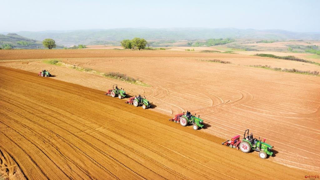 5月23日,寧武縣馬營村村民正在使用機(jī)械種植莜麥。寧武縣是莜麥的傳統(tǒng)種植區(qū),2017年,“寧武莜麥”榮獲農(nóng)業(yè)部“農(nóng)產(chǎn)品地理標(biāo)志”登記保護(hù),2020年10月16日,中國糧食行業(yè)協(xié)會命名寧武縣為“中國高原莜麥之鄉(xiāng)”。寧武縣現(xiàn)已建成莜麥標(biāo)準(zhǔn)化種植基地5萬畝,產(chǎn)量達(dá)到1260萬公斤,占到山西省莜麥總產(chǎn)量的10%以上,培育發(fā)展起以“蘆芽農(nóng)夫”“鄉(xiāng)之味”等自主品牌為龍頭的莜麥深加工企業(yè)。 (曹建國 攝)