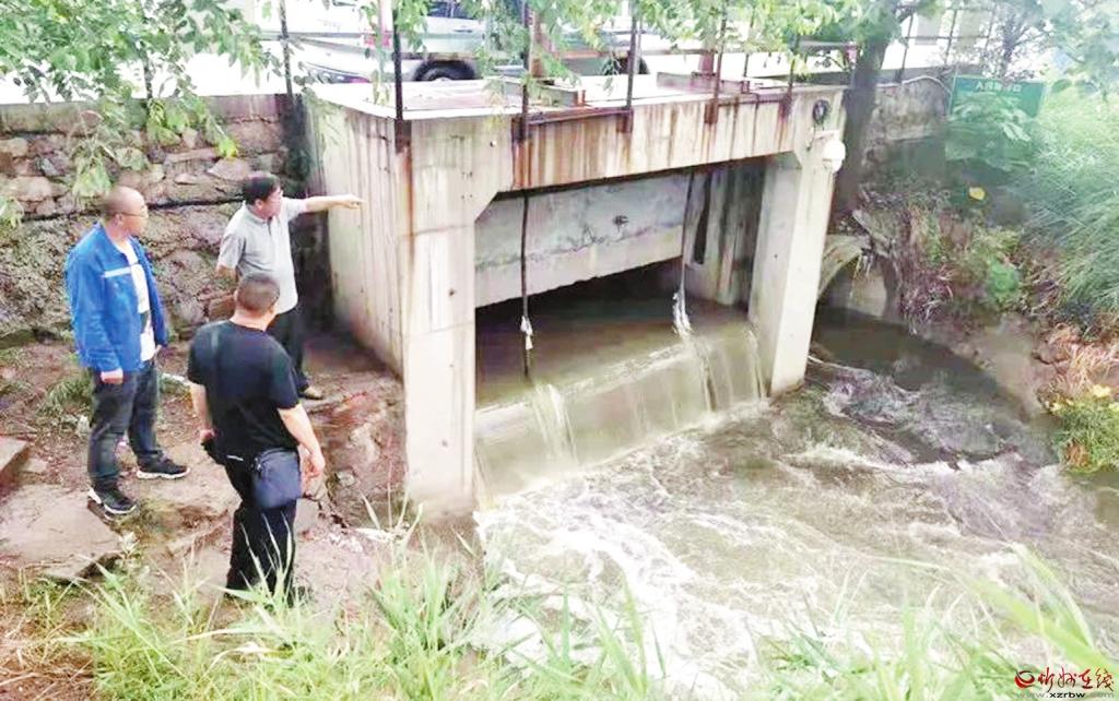 為確保汛期水質(zhì)穩(wěn)定,市生態(tài)環(huán)境局忻府分局在與氣象部門取得聯(lián)系,了解降雨強(qiáng)度、持續(xù)時(shí)間的同時(shí),加大了降雨期間對(duì)污水處理廠溢流口、重點(diǎn)河段的巡查力度。圖為該分局雨后巡查市污水處理廠外溢流口。 (張劍雄 攝)