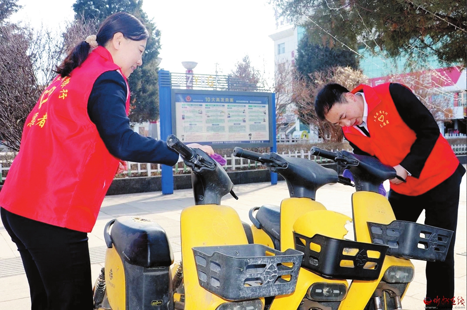 三月春風(fēng)拂揚(yáng)柳,雷鋒精神閃光芒。為進(jìn)一步弘揚(yáng)雷鋒精神,推動學(xué)雷鋒活動常態(tài)化,鞏固提升創(chuàng)衛(wèi)成果,營造和諧優(yōu)美環(huán)境,連日來,五寨農(nóng)商銀行機(jī)關(guān)黨員志愿服務(wù)隊組織開展了“擦亮共享單車,助力文明出行”志愿服務(wù)活動。(張家源攝)
