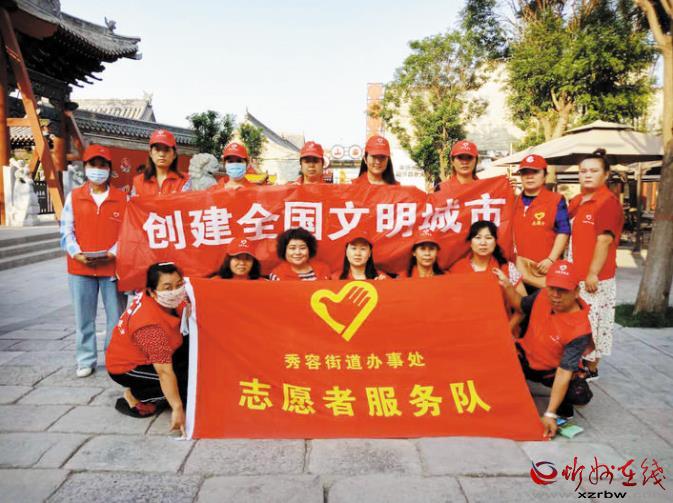 聚是一團(tuán)火,散是滿天星。一個(gè)微笑、一份禮讓、一只援手,都是志愿服務(wù)精神的繽紛綻放。也許,一個(gè)人的力量是有限的,但榜樣帶給市民的正能量是無窮的。古城游客紛紛表示,作為忻州人,在創(chuàng)建文明城市過程中,要當(dāng)好文明古城的傳播者,主動(dòng)傳遞文明新風(fēng),用自身的行動(dòng)帶動(dòng)更多的朋友們參與到文明創(chuàng)建中。從我做起,從小事做起,讓志愿服務(wù)在忻州古城久行成風(fēng)、眾行成氣,匯聚文明向上的力量,為文明城市創(chuàng)建精彩代言。圖為秀容辦志愿者服務(wù)隊(duì)在忻州古城泰山廟廣場。 (本報(bào)記者 王國梁)