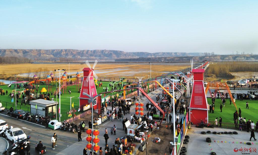 沿著唐家會村整潔的道路往前走,首先看到的是大型親子游樂園。游樂園項目總投資380萬元,占地31.8畝,共有無動力兒童樂園、動力游樂園、水上樂園、滑世界4大板塊,現(xiàn)有無動力設備35種、動力設備9種。日??土髁棵刻旒s200人至300人,日均收入6000元左右。每到周末或節(jié)假日,客流量逾千人。從2022年10月試運行到2023年9月累計收益150萬元。游樂園建成投運后,不僅改善了本村的生態(tài)環(huán)境,也填補了河曲縣城游樂園短缺這一空白,為河曲縣居民提供了一個體育健身、文化交流、休閑娛樂的室外活動場所,也為河曲縣郊區(qū)文化環(huán)境、生態(tài)環(huán)境的改善發(fā)揮了重要作用。