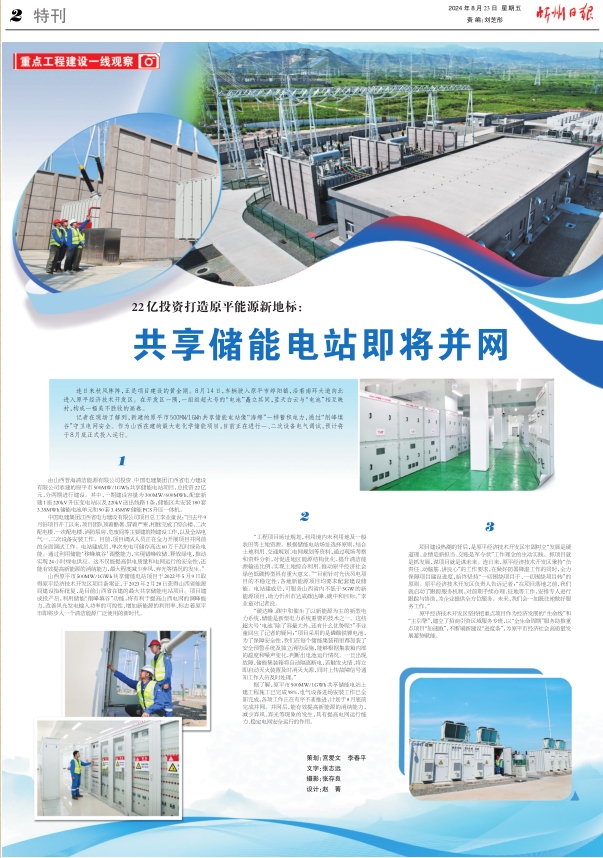 記者在現(xiàn)場(chǎng)了解到,新建的原平市500MW/1GWh共享儲(chǔ)能電站像“海綿”一樣蓄積電力,通過(guò)“削峰填谷”守衛(wèi)電網(wǎng)安全。作為山西在建的最大電化學(xué)儲(chǔ)能項(xiàng)目,目前正在進(jìn)行一、二次設(shè)備電氣調(diào)試,預(yù)計(jì)將于8月底正式投入運(yùn)行。