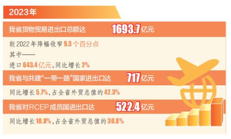 從月度數(shù)據(jù)看,我省外貿(mào)同比連續(xù)4個(gè)月實(shí)現(xiàn)增長(zhǎng)。2023年12月,我省進(jìn)出口146.6億元,同比增長(zhǎng)2.2%,是自9月份以來連續(xù)4個(gè)月實(shí)現(xiàn)增長(zhǎng)。2023年12月進(jìn)口55.6億元,同比增長(zhǎng)18.5%,是自5月份以來連續(xù)8個(gè)月實(shí)現(xiàn)同比增長(zhǎng)。