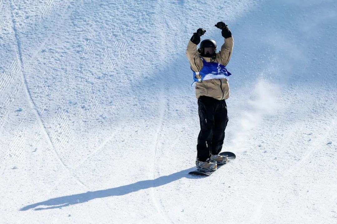 比賽共分三輪,取最好的兩輪成績(jī)相加為總成績(jī)。最后一輪成了蘇翊鳴和楊文龍的冠軍爭(zhēng)奪戰(zhàn)。全場(chǎng)焦點(diǎn)在蘇翊鳴身上,出發(fā)、滑行、加速、沖上跳臺(tái)、空中翻騰、一飛沖天,完美落地?!?3.40分!”全場(chǎng)最高分,賽場(chǎng)的歡呼聲為蘇翊鳴而起。