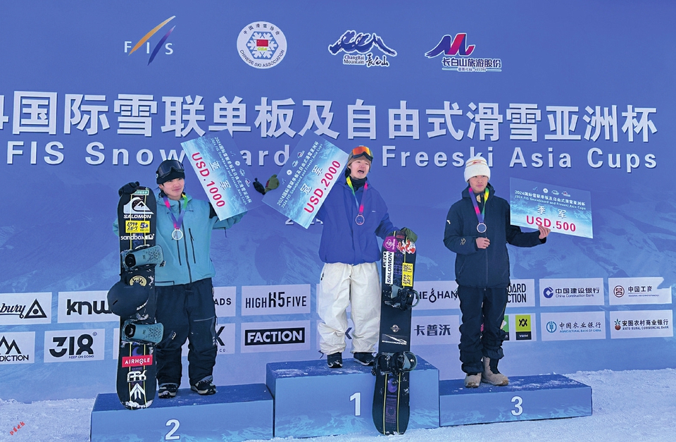 在3月4日男子單板坡面障礙技巧的比賽中,中國選手姜鑫杰憑借第一滑的83.00分收獲季軍,日本選手濱田海人、宮村結(jié)斗包攬冠亞軍;在女子單板坡面障礙技巧比賽中,中國選手張小楠奪冠,金容西收獲第5名。