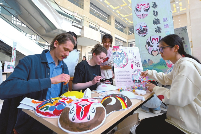 4月22日,山西財經(jīng)大學(xué)舉辦傳統(tǒng)文化嘉年華活動,外國嘉賓饒有興趣地體驗馬勺臉譜彩繪。楊晨玉攝
