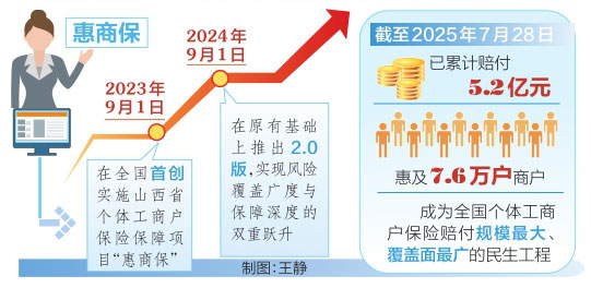 省市場(chǎng)監(jiān)管局相關(guān)負(fù)責(zé)人表示,“惠商?!表?xiàng)目以“小保險(xiǎn)”撬動(dòng)“大民生”,通過“兜底+賦能”的雙重保障,將政策關(guān)懷轉(zhuǎn)化為個(gè)體工商戶可感知、可量化的獲得感。項(xiàng)目將持續(xù)迭代升級(jí),在風(fēng)險(xiǎn)保障深度、服務(wù)賦能精度、生態(tài)共建廣度上發(fā)力,助力個(gè)體工商戶從“生存型”向“價(jià)值型”躍遷,為個(gè)體經(jīng)濟(jì)高質(zhì)量發(fā)展注入持久動(dòng)能。截至2025年7月28日,“惠商?!币牙塾?jì)賠付5.2億元,惠及7.6萬戶商戶,成為全國個(gè)體工商戶保險(xiǎn)賠付規(guī)模最大、覆蓋面最廣的民生工程。