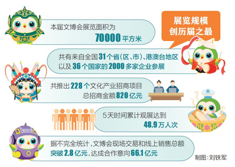 此外,為文博會專門開通的6條免費公交專線,累計運行3200余班次,運送觀眾超15萬人次。1500多名工作人員、600余名公安與安保人員、120名交警、280余名公交司機、204名志愿者及530名場館服務(wù)人員,以及消防、文旅、環(huán)衛(wèi)、醫(yī)療、市場監(jiān)管、水電氣、通信等部門的干部職工,始終堅守文博會現(xiàn)場,為廣大群眾有序觀展、舒適觀展創(chuàng)造了良好環(huán)境。