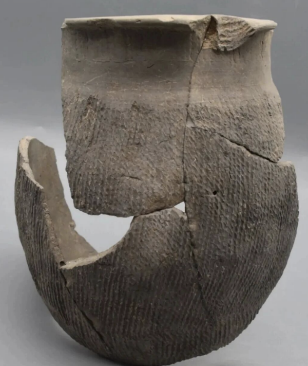 石器有穿孔石刀、石鐮。鬲與大口尊時代特征鮮明,鬲折沿為主,少量卷折沿,圓唇或尖圓唇,束頸,腹垂鼓,襠較高,尖錐狀足,器身飾較細(xì)的豎向繩紋,襠部飾橫向繩紋,足根素面。大口尊口徑明顯大于肩頸。器物年代在二崗下層文化偏晚階段。