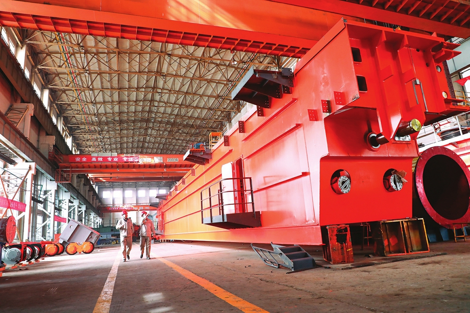 太重集團(tuán)起重機分公司車間,即將發(fā)往印度AMNS公司的450t鑄造起重機正在進(jìn)行拆車包裝作業(yè)。武劍峰攝