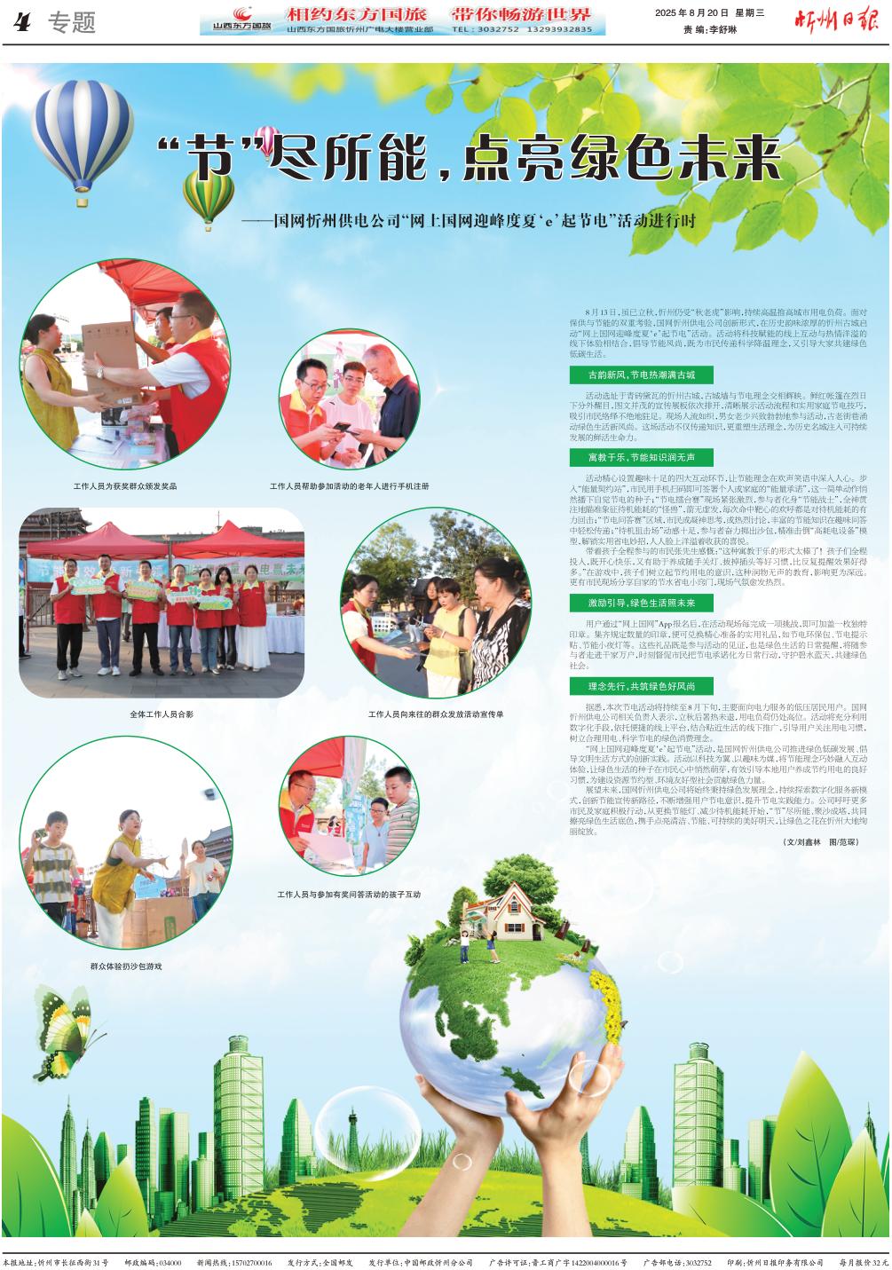 展望未來,國網(wǎng)忻州供電公司將始終秉持綠色發(fā)展理念,持續(xù)探索數(shù)字化服務(wù)新模式,創(chuàng)新節(jié)能宣傳新路徑,不斷增強(qiáng)用戶節(jié)電意識,提升節(jié)電實(shí)踐能力。公司呼吁更多市民及家庭積極行動(dòng),從更換節(jié)能燈、減少待機(jī)能耗開始,“節(jié)”盡所能、聚沙成塔,共同擦亮綠色生活底色,攜手點(diǎn)亮清潔、節(jié)能、可持續(xù)的美好明天,讓綠色之花在忻州大地絢麗綻放。