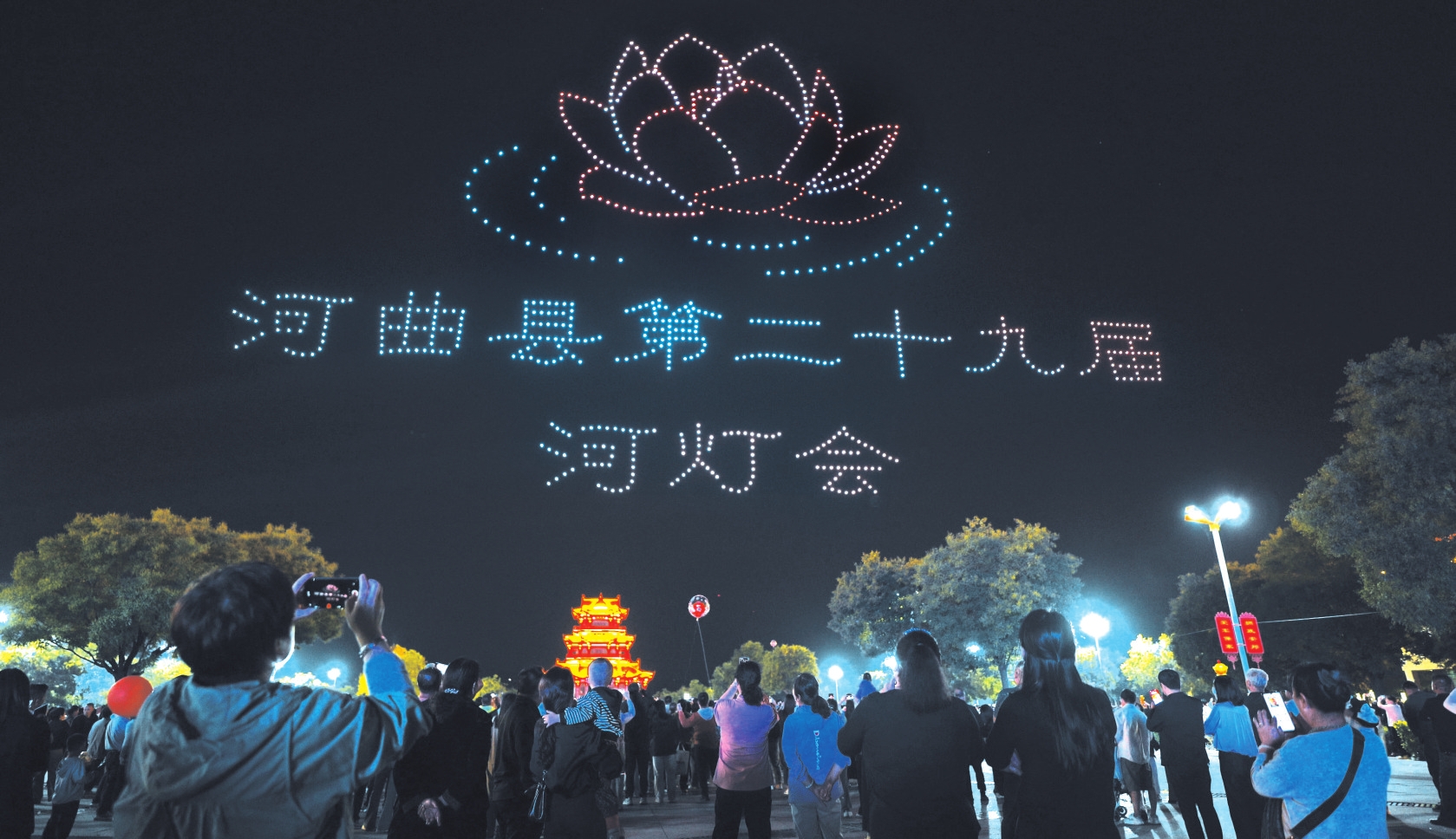為期三天的無人機表演,創(chuàng)新采用3D動態(tài)編隊技術,通過40組高精度畫面切換,將河曲的地理標志、文化符號與時代精神深度融合,實現(xiàn)“一幕一主題、幀幀皆故事”的沉浸式體驗,以“科技+文旅”讓市民和游客領略大美河曲的獨特魅力。市民張一婷說:“能在家門口看到這么高水平的無人機表演,挺自豪的。這種創(chuàng)新的‘文化表達’方式將我們家鄉(xiāng)的故事用高科技手段‘寫’在了夜空這張畫卷上。這說明家鄉(xiāng)的發(fā)展不只在經濟方面,更是一種文化上的自信與創(chuàng)新。河燈與無人機燈光天地呼應,是傳統(tǒng)與現(xiàn)代的完美融合?!?/p>