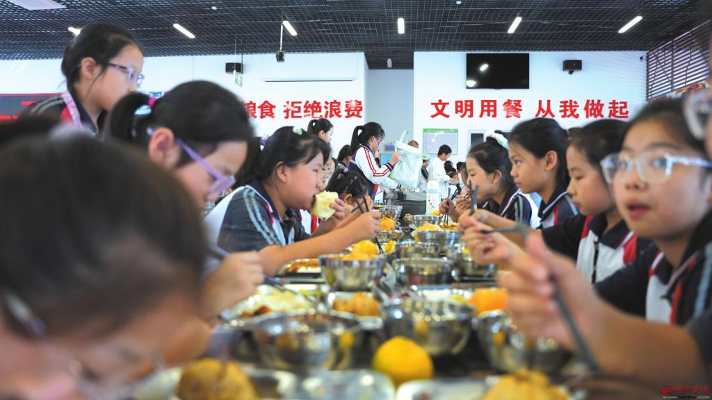 走進長城小學,1535.25平方米的校內餐廳里,900余名師生在老師引導下有序取餐、就餐,餐盤里葷素搭配的飯菜色香味俱全,孩子們的臉上滿是笑意?!耙郧鞍謰尮ぷ髅?,我每天得坐校車來回跑,現在有了午托太幸福了!午餐每天不重樣,有肉有湯,比媽媽做得還香!”六年級學生李宸慶捧著飯菜笑著說。