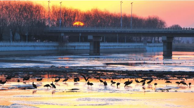 作為國(guó)家4A級(jí)旅游景區(qū),滹源景區(qū)依托滹沱河生態(tài)資源而建,220萬(wàn)平方米的區(qū)域內(nèi),“一帶二廊三區(qū)串珠狀”的分布格局,將濕地、河島、蘆葦蕩等多樣生態(tài)景觀有機(jī)串聯(lián)。全長(zhǎng)80公里的滹沱河穿境而過(guò),橡膠壩蓄水形成的連片淺灘水質(zhì)澄澈,魚(yú)蝦、水生昆蟲(chóng)等生物資源豐沛,完美契合了黑鸛淺水區(qū)覓食、喜靜避擾的生活習(xí)性,為它們提供了理想的棲息環(huán)境。