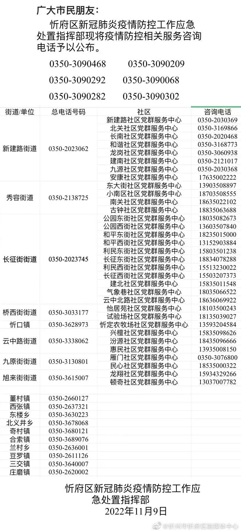 關于公布忻府區(qū)疫情防控靜態(tài)管理期間服務熱線電話的公告