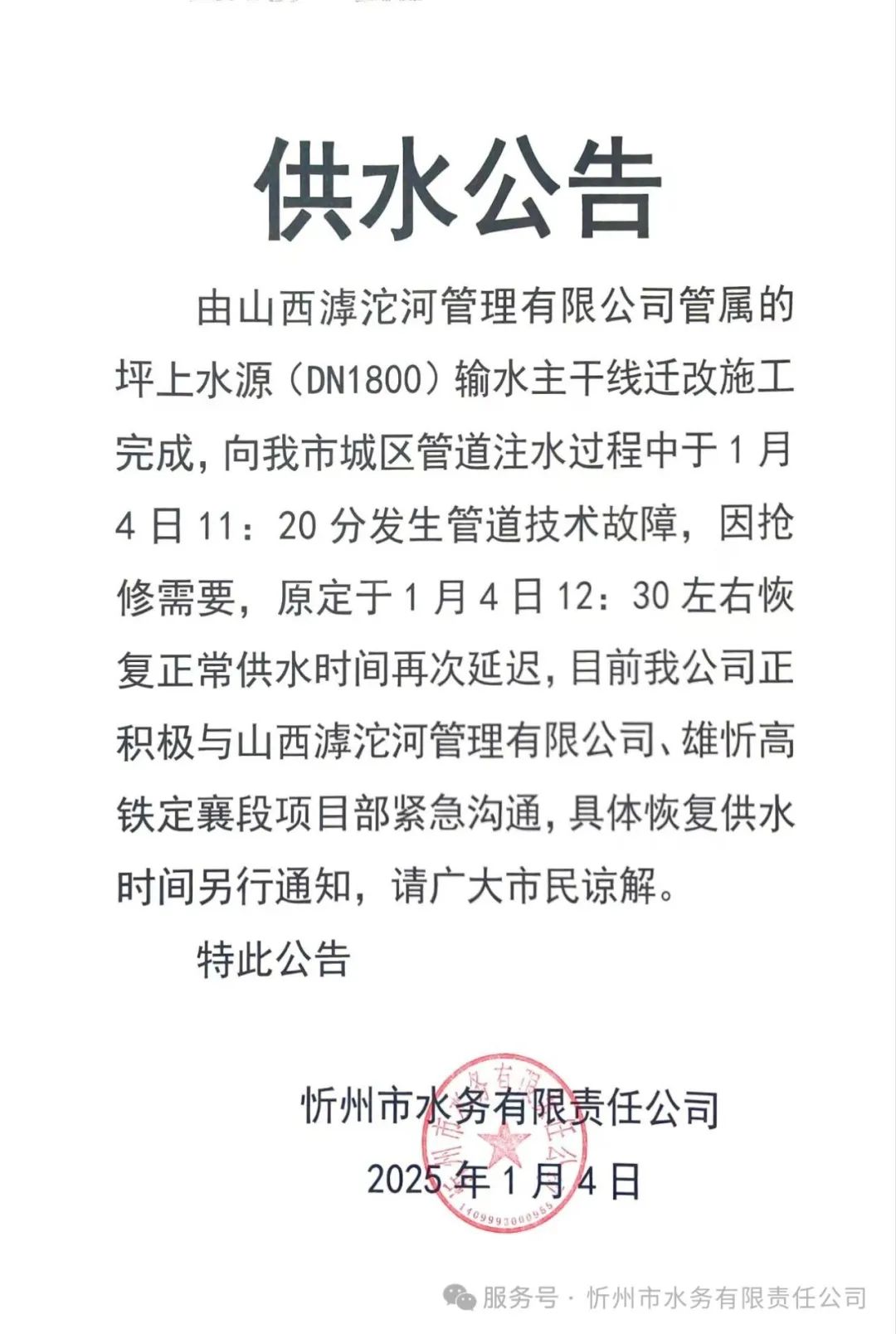 最新消息!城區(qū)恢復(fù)供水時間延遲