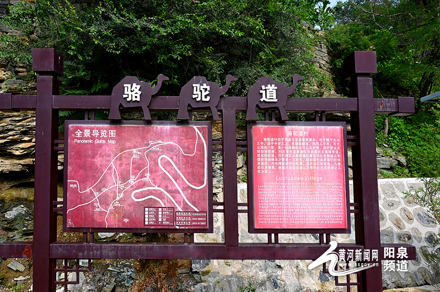 黃河新聞網(wǎng)陽(yáng)泉訊(記者秦銘明)我們的汽車沿著高低起伏、曲折蜿蜒的太行山1號(hào)國(guó)家觀光旅游公路在青山間穿梭,飛鳥時(shí)不時(shí)被驚起,幽靜神秘的太行山宛如輕紗遮面的佳人,靜靜佇立。公路邊、山腰中、泉水旁,黃墻黛瓦的民居錯(cuò)落有致,青石綠苔的石階縱橫交錯(cuò),一個(gè)掩映在青山綠水中,坐落在綠樹芳草間的村落“駱駝道村”出現(xiàn)在眼前。