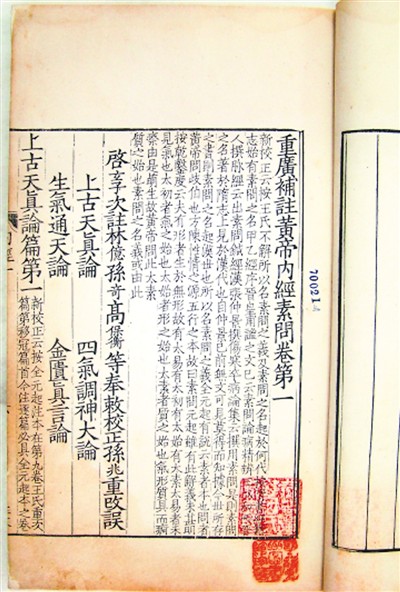 明嘉靖二十九年重廣補注黃帝內經素問二十四卷,甘肅省圖書館藏?!饵S帝內經》提出對瘟疫要早發(fā)現早治療,治療后防止復發(fā)。