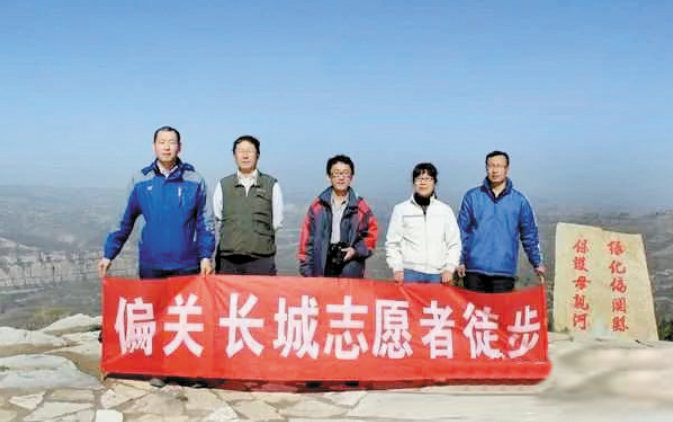 漸漸地,賀文認識了好多不一樣的“人”——長城文化人。在市長城學會偏頭關分會兩位副會長,也是偏關縣的著名文化人秦在珍、李愛民和來老牛灣探訪長城的外地長城文化人的熏陶下,賀文終于頓悟自己內心想要的是什么。于是,2005年開始,他買書讀史,從書中發(fā)現問題,再帶著問題去有目標地走長城。看史書——走長城——再看史書,這就是“賀文秘訣”。另外,只要有人來吆喝他走長城,他就開著自己的車子,載著自己批發(fā)部的食品當“干糧”,陪大家一起去走長城。大家戲稱,賀文的批發(fā)部成了走長城人的“干糧店”,而且是免費提供。因為愛,多少年來,賀文就這樣搭上自己的私家車、帶上“干糧”,給自己超市隨時來一個“關門大吉”,陪著來這座小城的長城愛好者,帶著全國各地來小城考察研究長城的人,一起走長城。