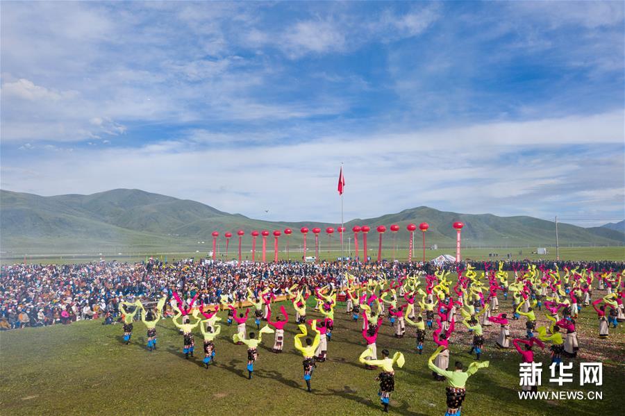 8月6日,當(dāng)?shù)厝罕娫诒硌菸璧浮睹利惖慕瘃R色達(dá)》。8月6日至8日,四川甘孜山地文化旅游節(jié)系列活動(dòng)之一的色達(dá)金馬文化節(jié)在四川省色達(dá)縣扎青塘草原舉辦。當(dāng)?shù)厝罕娚碇?jié)日盛裝載歌載舞、歡聚一堂,文藝表演、賽馬、傳統(tǒng)服飾展演、非遺展示等活動(dòng)精彩紛呈。 近幾年,當(dāng)?shù)卣罅ν苿?dòng)文旅、農(nóng)旅、牧旅融合發(fā)展,全域旅游豐富多彩,成為當(dāng)?shù)孛撠毐夹】档闹匾ナ?。新華社記者 江宏景 攝