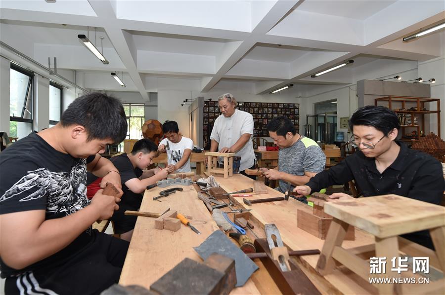 8月25日,在天津職業(yè)大學辛全生大師木藝工作室,辛全生在指導他的徒弟們。新華社發(fā)(孫凡越 攝)