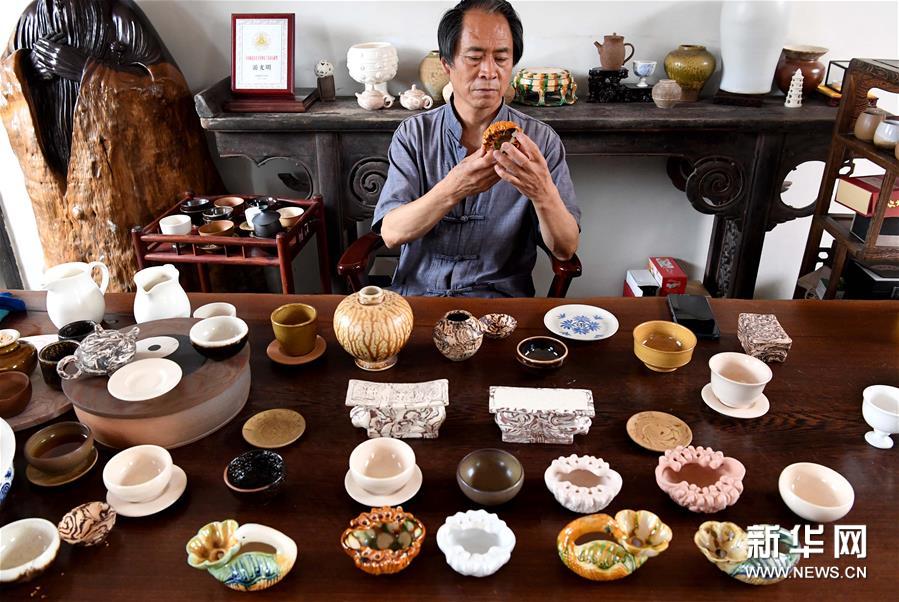 在河南省鞏義市站街鎮(zhèn)小黃冶村的工作室里,游光明在查看他燒制的“三彩雕花杯”(6月19日攝)。新華社記者 李安 攝 新華社鄭州9月16日電 題:千年窯火:生生不“熄”,煉鑄永恒之美 新華社記者王丁、桂娟、雙瑞 河南,鞏義,小黃冶村。 從門口、路邊到窗臺、桌面,到處堆滿瓶瓶罐罐,連花盆都是自己燒制的廢品。在中國陶瓷史上知名窯口——鞏縣窯的黃冶窯窯址附近,63歲的游光明把簡陋的農(nóng)家院當(dāng)工作室,專注研究和復(fù)燒歷史上的經(jīng)典器型。 “我想讓更多人看到中國古代的智慧和審美,讓家鄉(xiāng)人用上過去宮廷貴族才能享用的鞏縣窯瓷器?!庇喂饷髡f,沉浸在瓷器世界近20年,每復(fù)燒出一個器型,是他最幸福的時刻。 黃冶村旁有一條黃冶河,現(xiàn)在已經(jīng)沒有水了。歷史上,黃冶河先流入伊洛河,再隨伊洛河匯入黃河。黃冶窯位于河洛文化區(qū)腹心地帶,是所有窯址中離黃河最近的一處。 “鞏縣窯在普通人中認(rèn)知度不高,但在陶瓷史上卻有非常重要的地位?!敝袊盘沾蓪W(xué)會會長孫新民介紹,鞏縣窯是最早燒制白瓷的,它還是目前發(fā)現(xiàn)最早、產(chǎn)量最大、質(zhì)量最好的唐三彩窯,早在唐代,鞏縣窯產(chǎn)的三彩就外銷許多國家和地區(qū)了。 鄭州市文物局局長任偉說,鞏縣窯所處區(qū)域是黃河和大運(yùn)河交匯處,這些瓷器向西經(jīng)陸上絲綢之路到達(dá)中亞、歐洲,向東順伊洛河、黃河、大運(yùn)河通濟(jì)渠段到開封,經(jīng)揚(yáng)州走海上絲綢之路,運(yùn)往東南亞、非洲等地。 瓷器,是西方世界對中國最重要的印象之一。從古到今,鮮有一件物品像瓷器一樣,與一個國家的聯(lián)系如此直接而緊密。精美的瓷器,把中國人的藝術(shù)審美、精神追求傳播到世界各地。 “作為典型的中國文化符號,瓷器與中國歷史發(fā)展進(jìn)程密不可分,5000年中華文明史上,長達(dá)3000年貫穿著瓷器文明?!睂O新民說。 早在公元前16世紀(jì)的商代早期,最早的瓷器就出現(xiàn)了。河南博物院藏有一件商代原始瓷尊,內(nèi)外滿施光亮晶瑩的青灰色釉,有玻璃質(zhì)感和光澤,用手輕輕叩擊,會發(fā)出清脆的金石之聲。 到了東漢,真正意義上的瓷器產(chǎn)生??脊虐l(fā)掘出的漢代瓷片,透光性好,吸水率低,釉層透明而有光澤,經(jīng)由1300℃左右高溫下燒制而成,具備了瓷器的各項(xiàng)基本條件。 此后,泥與火的藝術(shù)幻化出新的神采。宋代,瓷器燒造走向高峰,后世所熟知的五大名窯都集中在這一時期,釉色之美、釉質(zhì)之美,達(dá)到新的美學(xué)境界—— 鈞窯“入窯一色,出窯萬彩”,釉色如行云流水變化無窮;汝窯含蓄瑩潤,以“雨過天青云破處”的色澤為人稱道;哥窯釉面可開出天然紋理,美稱“墨紋梅花片”。還有,耀州窯富有流動韻律美的刻花,景德鎮(zhèn)窯碧如湖水的青白瓷色,龍泉窯青梅般瑩亮的青瓷…… “家財萬貫不如汝瓷一片”——人們對瓷器的推崇,不只是其作為實(shí)用器和藝術(shù)品的價值,還因?yàn)槠鋬A注了中國人傳統(tǒng)的美學(xué)精神和文化內(nèi)涵,隱含著為人處世的態(tài)度。時至今日,許多中國人仍在執(zhí)著于解讀古老的瓷器密碼。 比起創(chuàng)新,游光明更在意守正。鞏縣窯燒制持續(xù)時間漫長,傳承下來的器物達(dá)3000多種,目前他已復(fù)制出100多種典型器物。他說,再現(xiàn)祖先創(chuàng)造的美,是自己的使命。 (責(zé)任編輯:盧相汀) |