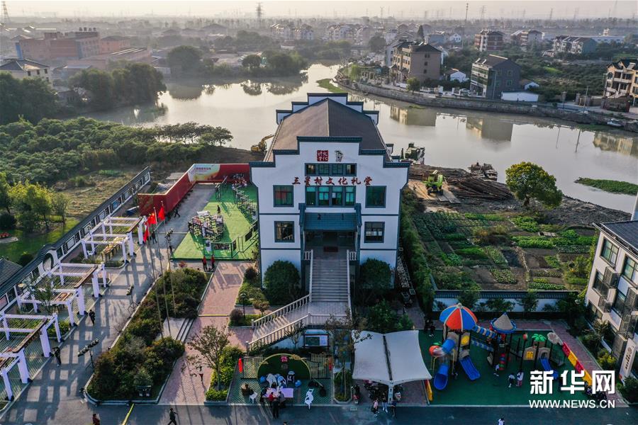11月7日,在杭州市余杭區(qū)塘棲鎮(zhèn)三星村文化禮堂前,村民在展示傳統(tǒng)技藝“翻絲綿”(無人機(jī)照片)。當(dāng)日,浙江省杭州市余杭區(qū)農(nóng)村文化禮堂“百村千場”聯(lián)盟走親在塘棲鎮(zhèn)三星村文化禮堂正式啟動?;顒蝇F(xiàn)場組織了米塑、滾燈、鰲魚燈、高蹺、掮爐子等余杭非遺技藝走親展示以及塘棲鎮(zhèn)禮堂聯(lián)盟原創(chuàng)節(jié)目展演。 從2020年3月開始,浙江省杭州市余杭區(qū)塘棲鎮(zhèn)以“小康路上我們一起曬幸?!睘橹黝},啟動美麗鄉(xiāng)村禮堂文化節(jié)活動,開展“幸福接力賽”、文化“云”講課等一系列基層文化活動。塘棲鎮(zhèn)還創(chuàng)新推進(jìn)了“禮堂聯(lián)盟”結(jié)對互促工作,與區(qū)級文化團(tuán)隊結(jié)對共建,使鄉(xiāng)村文化禮堂“活”起來,全面提升鄉(xiāng)村百姓的幸福感。新華社記者 徐昱 攝