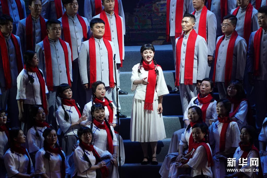 6月30日,在山西大劇院,演員在演唱《一道道水 一道道山》。新華社記者 詹彥 攝