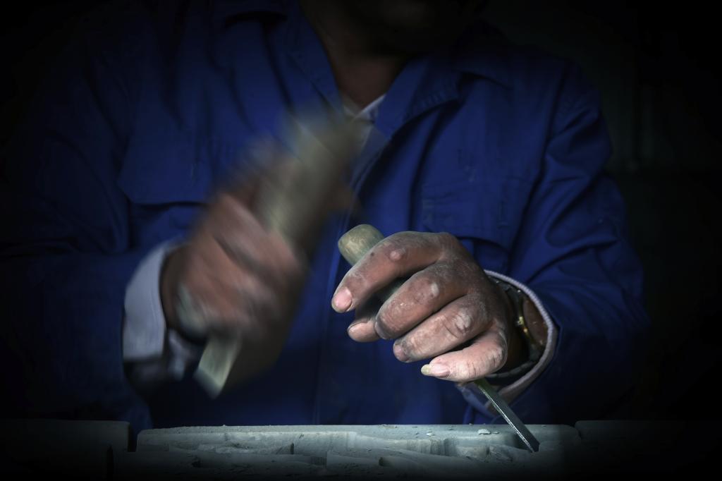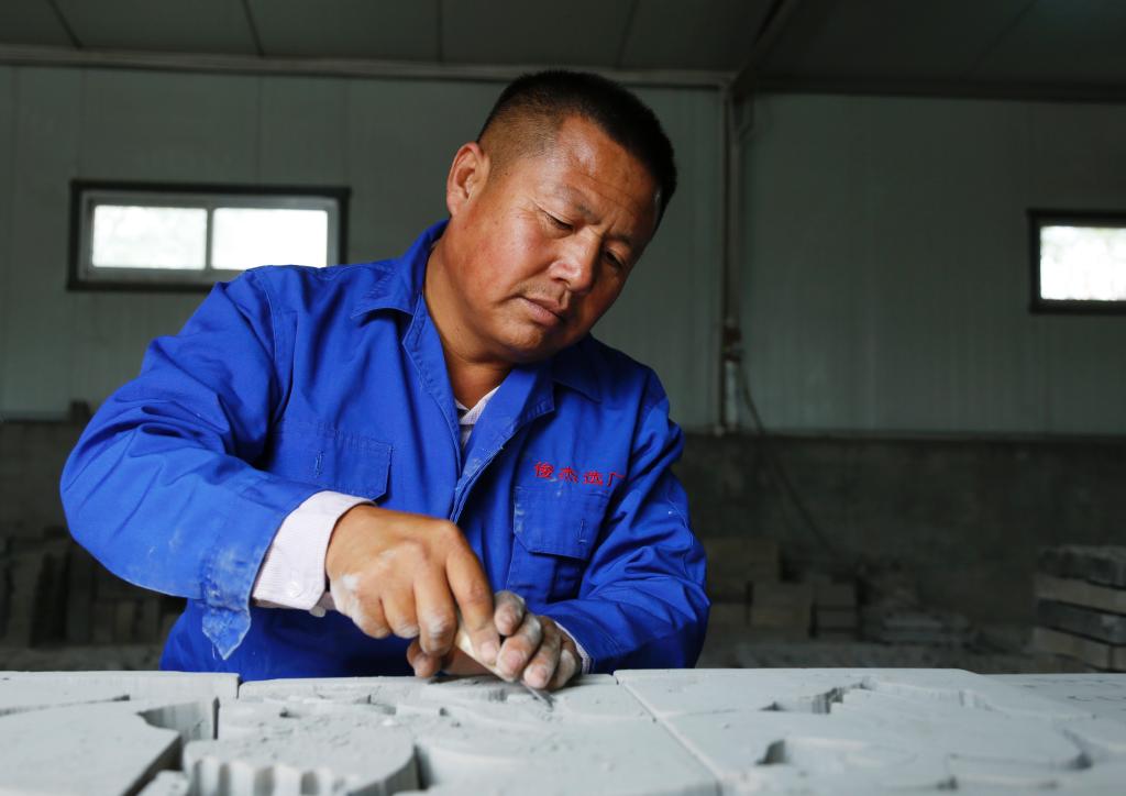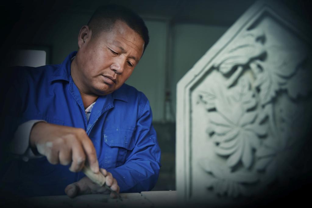 說起磚雕的未來,王鎖貴憂心忡忡?!巴_(tái)磚雕”——這個(gè)在王鎖貴手上“復(fù)活”的傳統(tǒng)技藝,現(xiàn)在面臨后繼無人的窘境。王鎖貴廠子里的工人,都在45歲以上。年輕人不想學(xué),主要是“嫌臟”——雕刻時(shí)青磚粉塵彌漫,還得隨雕隨用嘴吹,現(xiàn)在看來,還沒有很好的解決辦法。