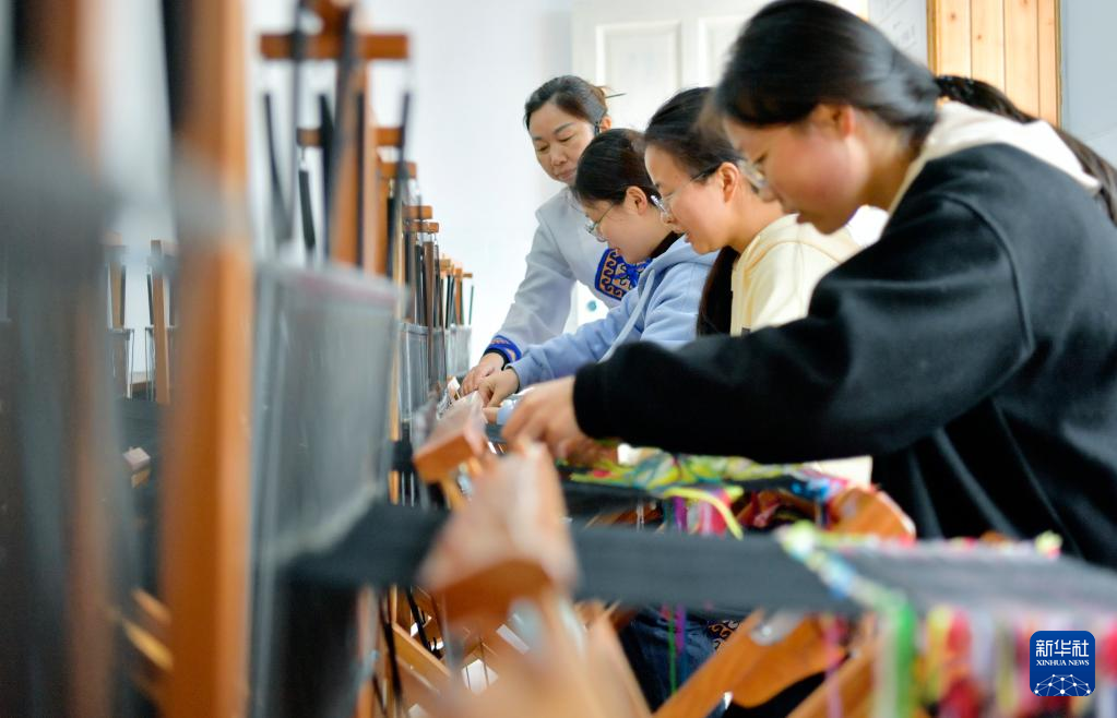 春暖花開時節(jié),湖北省宣恩縣西蘭卡普傳承基地迎來各地的學(xué)生前來研學(xué)。學(xué)生們在這里了解土家織綿文化、學(xué)習(xí)傳統(tǒng)手工技藝,感受非遺文化的魅力。西蘭卡普是一種土家織錦,色彩鮮明,紋樣美觀,其編織技藝被列入國家級非物質(zhì)文化遺產(chǎn)名錄。新華社發(fā)(宋文攝)