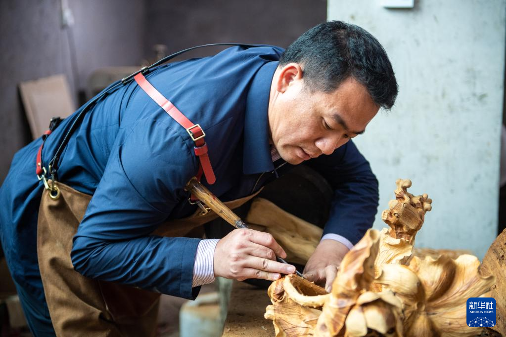 洞口木雕已被正式列入湖南省省級非物質(zhì)文化遺產(chǎn)名錄,木雕產(chǎn)品遠銷70多個國家和地區(qū)。新華社記者 陳思汗 攝