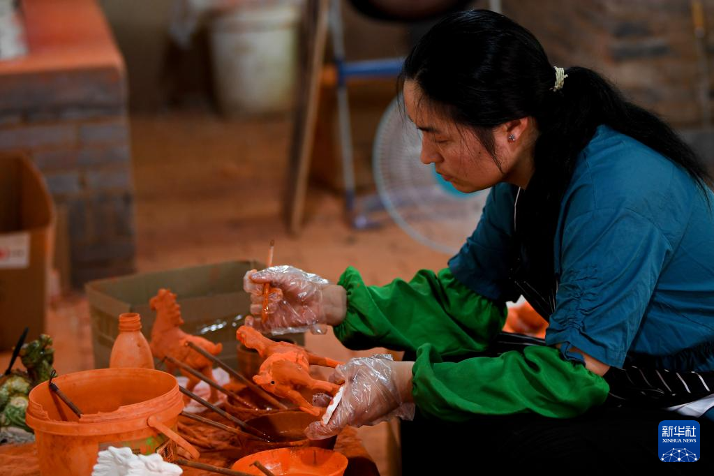 河南省洛陽市朝陽鎮(zhèn)南石山村以生產唐三彩而聞名。近年來,當?shù)卣e極引導三彩產業(yè)數(shù)字化建設工作,推動唐三彩燒制技藝傳習館、唐三彩陶藝博物館、唐三彩文化研學所等優(yōu)化升級。目前,南石山村唐三彩產業(yè)的專業(yè)燒制藝人有2000余人、文化企業(yè)68家,年產值達3.5億元。新華社記者 吳剛 攝