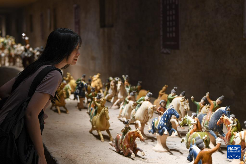 6月6日,游客在南石山村的唐三彩作品陳列展示館內參觀。??