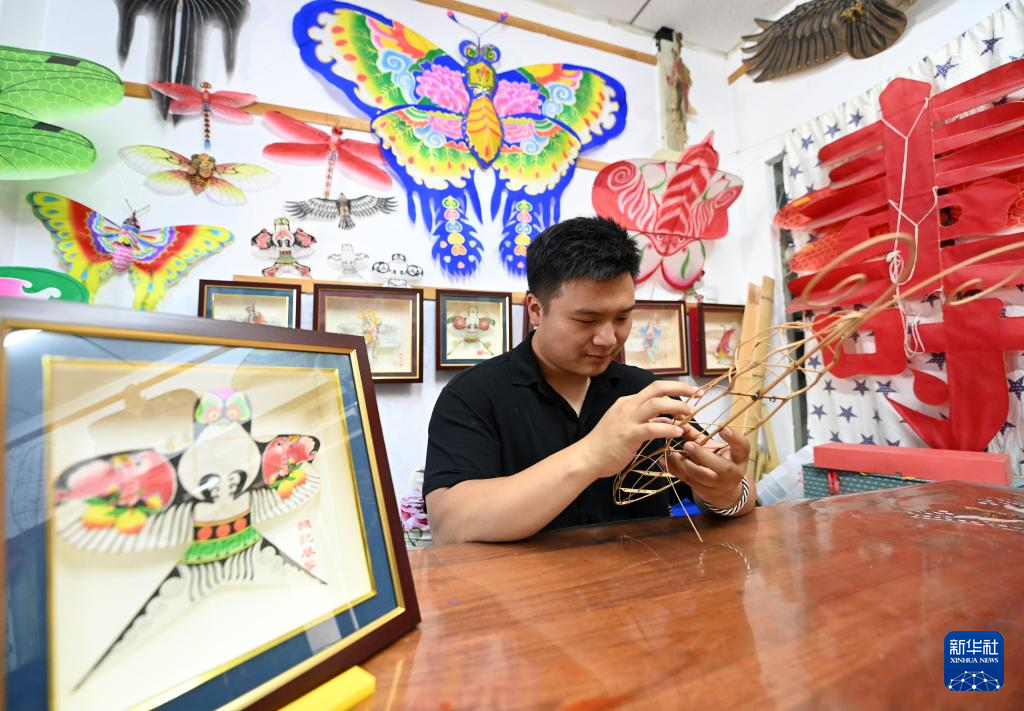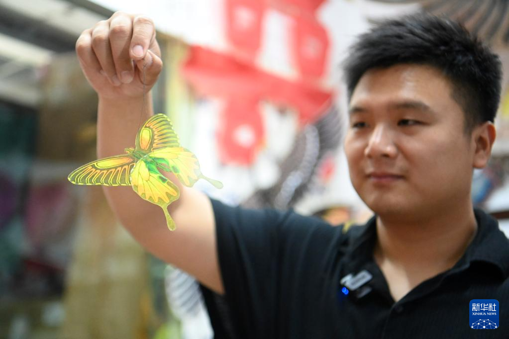 出身風箏世家的魏博文大學(xué)畢業(yè)后,回到家鄉(xiāng)跟隨父親魏國秋“入行”做風箏。他從自己有所基礎(chǔ)的繪畫著手,發(fā)揮年輕人的創(chuàng)新優(yōu)勢,在風箏設(shè)計上屢屢出新,不僅與一些游戲公司合作推出風箏聯(lián)名款,還推動風箏制作技藝的改進創(chuàng)新,設(shè)計了適合在室內(nèi)放飛的迷你風箏。