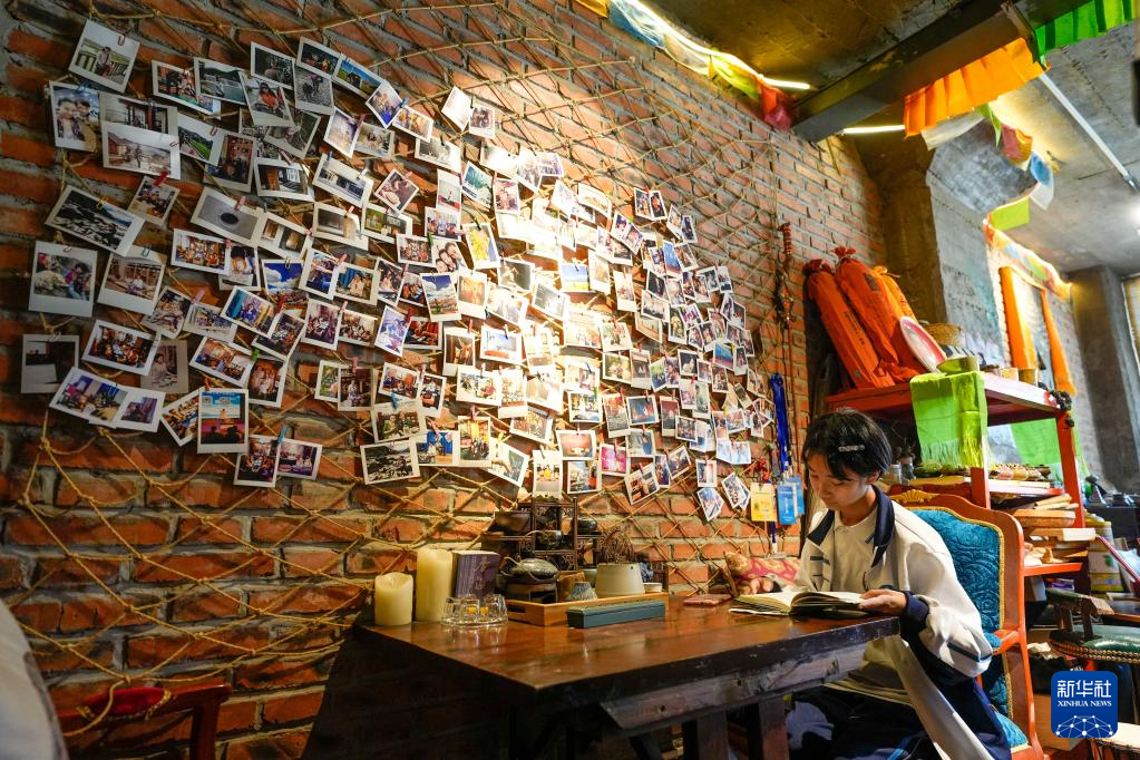 游客在啟新1889文化創(chuàng)意產(chǎn)業(yè)園一家商鋪內(nèi)休閑(7月2日攝)。