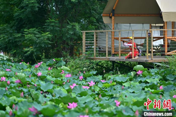 7月5日,貴港市第十三屆荷文化系列活動(dòng)在廣西貴港市港南區(qū)東津鎮(zhèn)沖口屯啟動(dòng)?;顒?dòng)現(xiàn)場開展水上醒獅表演、荷香市集、客家擂茶、醒獅營地等一系列活動(dòng),讓游客在賞花游玩的同時(shí),感受當(dāng)?shù)刎S富的荷文化。