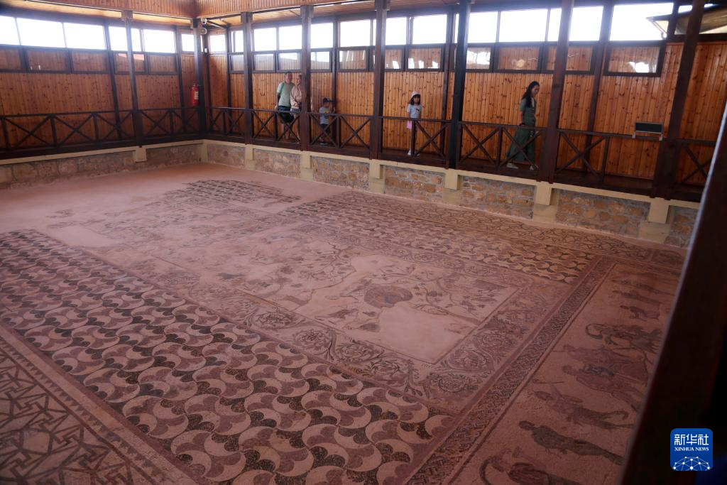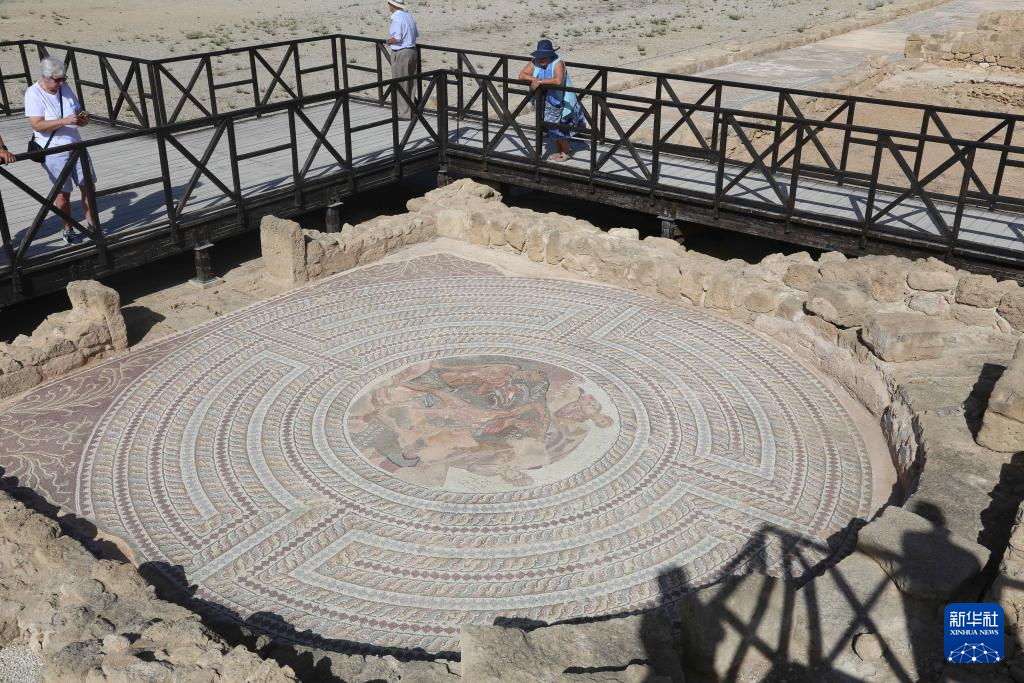 這是11月8日在塞浦路斯帕福斯考古公園內(nèi)拍攝的馬賽克地板。