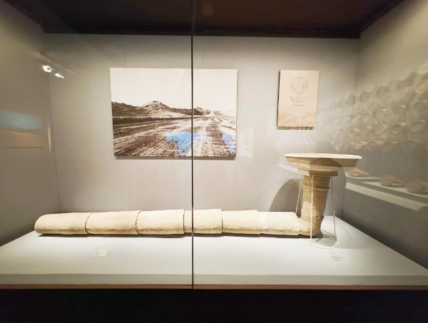 寧夏固原市原州區(qū)的戰(zhàn)國(guó)秦長(zhǎng)城博物館展出的大型陶制“排水系統(tǒng)”。新華社記者許晉豫 攝