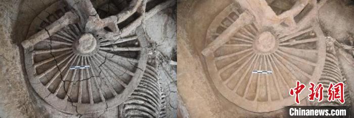 圖為山東曲阜車(chē)馬坑遺址修復(fù)前后對(duì)比圖。河南省文物考古研究院 供圖