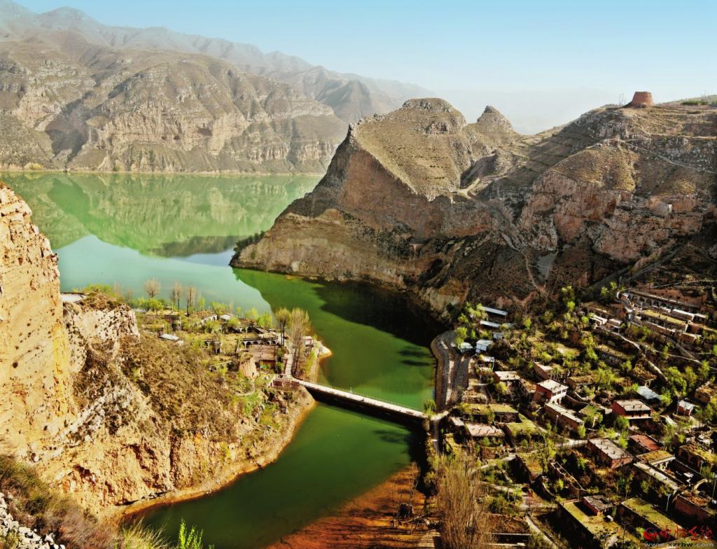 關(guān)河口的地理形勢相當(dāng)險要,是一處絕妙的黃河景觀。關(guān)河入黃河處河道幽深狹窄,蜿蜒曲折的崖壁垂直落下,高度約100余米。關(guān)河口村對面的崖壁更為險要,俗稱螞蟻崖,意為從崖頂看崖底的人,小如螞蟻,驚險可怖。明萬歷年間的偏關(guān)學(xué)士盧承業(yè)在《關(guān)河魚浪》詩里詠嘆道:“關(guān)西形勢若崤函,北塞天橫折向南。巖戍飛樓懸壯劍,河翻浪雪點(diǎn)幽潭。花飄蝶影驚魚穴,風(fēng)送濤聲破烏庵。相接云峰傳八陣,籌邊人至把兵談?!痹娭忻枋鑫麝P(guān)河口地勢險要,形若西秦函谷關(guān),就連懸崖峭壁上的巖石和望河樓也像懸在半空中戍邊的利劍,令來犯者望而卻步。但這些都無法掩飾關(guān)河口恬適幽靜的景致,河浪如雪,濤聲如雷,潭似點(diǎn)墨,花開花落,彩蝶翩翩,魚影躍躍……此情此景誰能將它與烽火連天的邊關(guān)聯(lián)系在一起呢?
