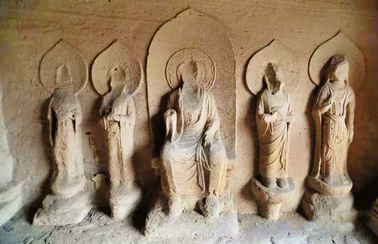 靜居寺石窟位于靜樂縣豐潤(rùn)鎮(zhèn)豐潤(rùn)村南500米寧白公路東側(cè)半山崖間,現(xiàn)存9窟,分布面積430平方米。據(jù)3至6窟間的摩崖碑記載,鑿于唐儀鳳二年(公元677年)。石窟均坐東朝西。1至6窟平面呈長(zhǎng)方形,平頂,四壁平直,高1.5米至1.8米,寬2米至2.5米,深1.5米至2.5米?;鹧纨愰T,長(zhǎng)方形,高1.1米至1.5米,寬1米至1.4米。門兩側(cè)設(shè)方形石柱或八棱束蓮柱,門楣內(nèi)雕飛天或花卉??邇?nèi)均設(shè)低壇,三壁均設(shè)石造像。7至9窟呈長(zhǎng)方形,拱券頂。3至6窟外壁存摩崖碑3通,均螭首,碑文漫漶不清??唔斏喜看嬗锌唛艽住?呶鱾?cè)存明萬歷二十二年(公元1594年)及清嘉慶十五年(公元1810年)重修碑各1通。1986年5月公布為省級(jí)重點(diǎn)文物保護(hù)單位。2019年10月7日公布為全國(guó)重點(diǎn)文物保護(hù)單位。
