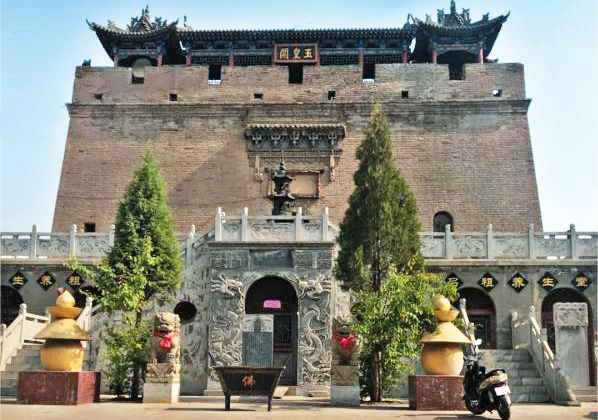 護城樓位于河曲縣文筆鎮(zhèn)北元村北城墻外10米處,明代建筑。據(jù)城樓匾額題記載,建于明萬歷年(公元1573年至公元1620年),重修于1996年4月14日。南北長27米,東西寬21米,占地面積567平方米。坐北朝南,為二層磚木結(jié)構(gòu)。一層臺基高3.5米,中部設拱券門,前有石砌臺階相連,券門門額石匾書“鎮(zhèn)虜”二字。匾額上砌垂花門樓,檐下設三踩單翹斗拱。劵門兩側(cè)設拱形小窗。二層四周設女兒墻,有玉皇閣一座,建于清乾隆三十一年。殿身面寬三間,進深四椽,單檐硬山頂,五檁無廊式構(gòu)架,斗拱一斗二升交麻葉。東西為鐘樓、鼓樓。1984年河曲縣人民政府公布其為縣級文物保護單位;2007年6月6日被忻州市人民政府公布為第一批市級文物保護單位;2016年6月6日被山西省人民政府公布為第五批省級文物保護單位。