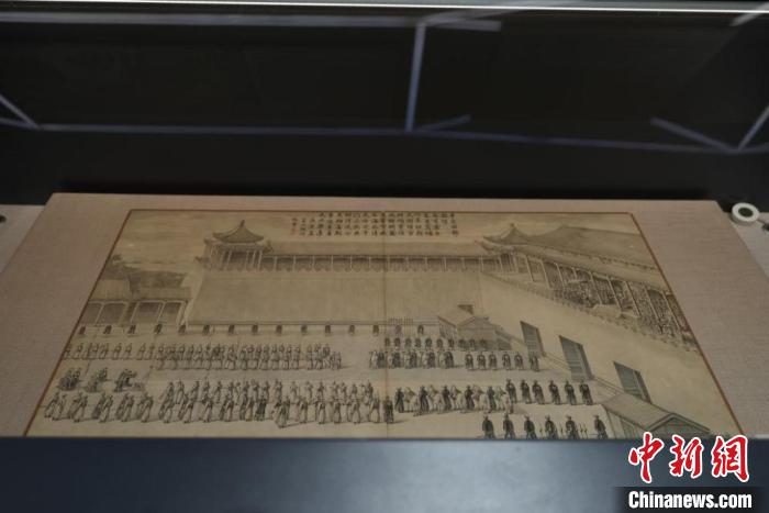 17世紀(jì),隨荷蘭使團(tuán)出行的約翰·尼霍夫在版畫中描繪了使團(tuán)在太和殿廣場等待順治帝接見的場面;堪稱18世紀(jì)銅版畫藝術(shù)的巔峰之作《乾隆平定準(zhǔn)部回部戰(zhàn)圖》,于乾隆年間由意大利人郎世寧等宮廷西洋畫師奉旨繪制。展覽展出了《乾隆平定準(zhǔn)部回部戰(zhàn)圖》的其中一幅作品真跡,繪圖精美、鐫刻精良,難得一見。