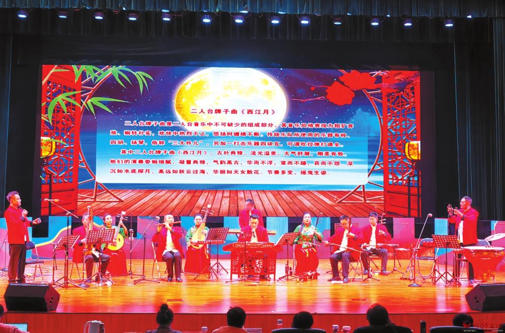 由神池縣文化和旅游局選送、神池縣啟航道情劇團(tuán)演奏的神池道情曲牌聯(lián)奏《情系道情》,是一首民樂新作。全曲以傳統(tǒng)曲牌〔碰梆子〕為基調(diào),串聯(lián)了〔大救駕〕〔虞美人〕〔夾墻瞭〕〔吊棒槌〕〔上南坡〕〔富貴不斷頭〕〔出隊(duì)子〕等曲牌,運(yùn)用主題變奏、調(diào)性擴(kuò)展等手法,構(gòu)成一組具有“散—慢—中—快”序列性結(jié)構(gòu)變化的單樂章,具有鮮明的描寫性、敘事性和抒情性。全曲結(jié)構(gòu)緊湊,織體豐富,濃淡有致,演奏張弛有度,色彩鮮明,風(fēng)味獨(dú)特,博得評委觀眾一致好評。