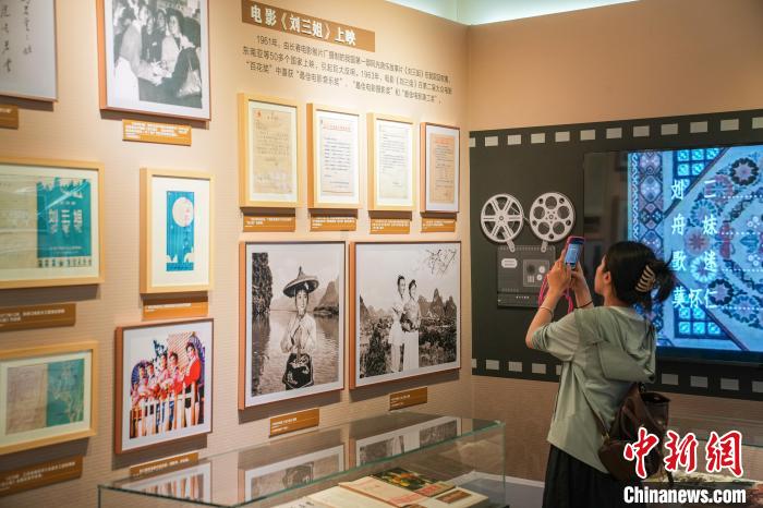 本次展覽上,有近百件劉三姐文化檔案首次亮相。展品中,彩調(diào)劇《劉三姐》劇本第一方案原稿、1960年5月越南胡志明主席在南寧觀看歌劇“劉三姐”后與演員合影照片、1963年6月原中國(guó)文化部批復(fù)同意向印度尼西亞華僑提供《劉三姐》有關(guān)資料等珍貴檔案資料,吸引參觀者駐足觀看。