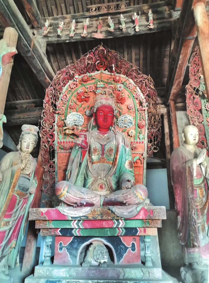 定襄北社洪福寺紅臉文殊懸塑宮清華攝