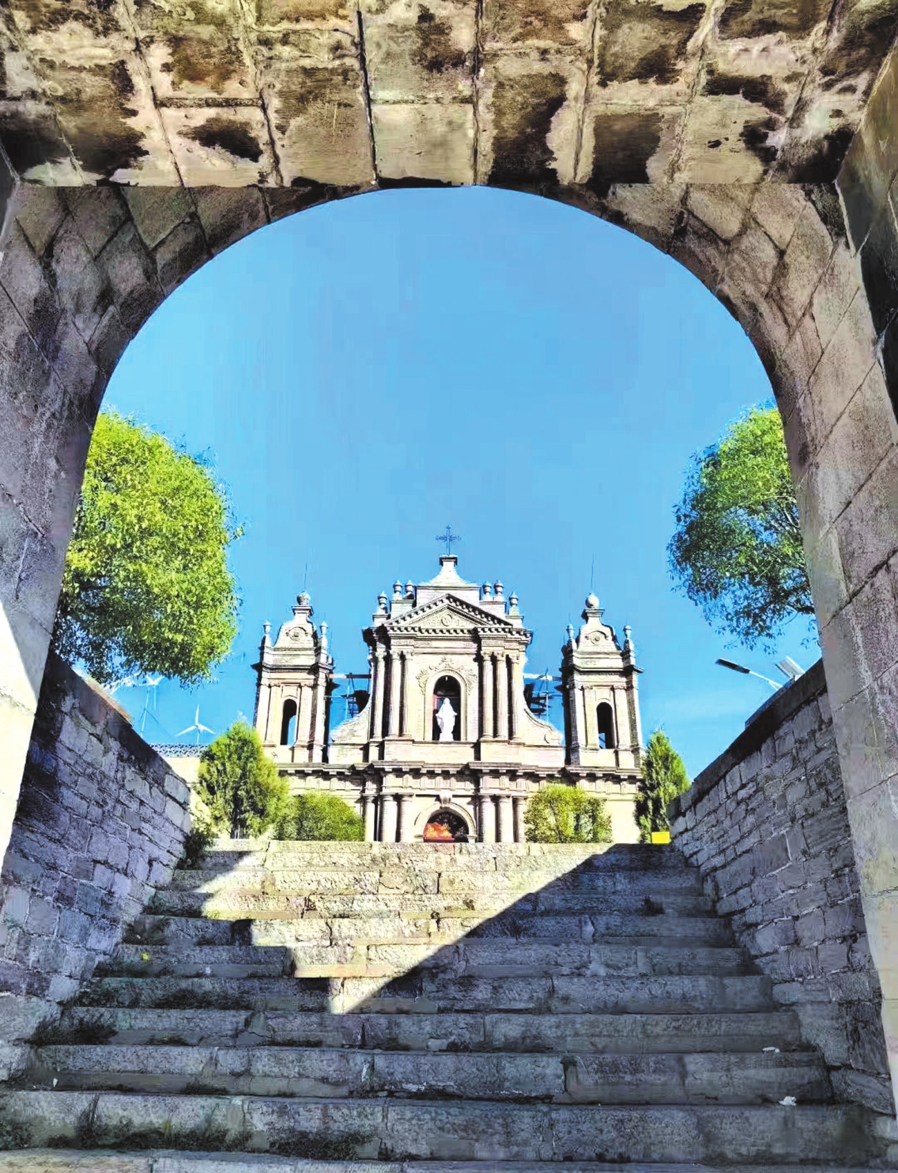 這座教堂始建于18世紀(jì)70年代,占地達(dá)三萬平方米。1897年—1898年間,意大利籍主教艾士杰與建筑師李有剛運(yùn)用當(dāng)?shù)仄胀ùu石,奇跡般建造出一座異國風(fēng)情的高山城堡。教堂主體建筑簡練垂直,頂部裝飾方圓相間,數(shù)不清的十字架直指云天。內(nèi)部則完全是西式的雕像、壁畫和教務(wù)活動(dòng),讓人恍如置身歐洲。