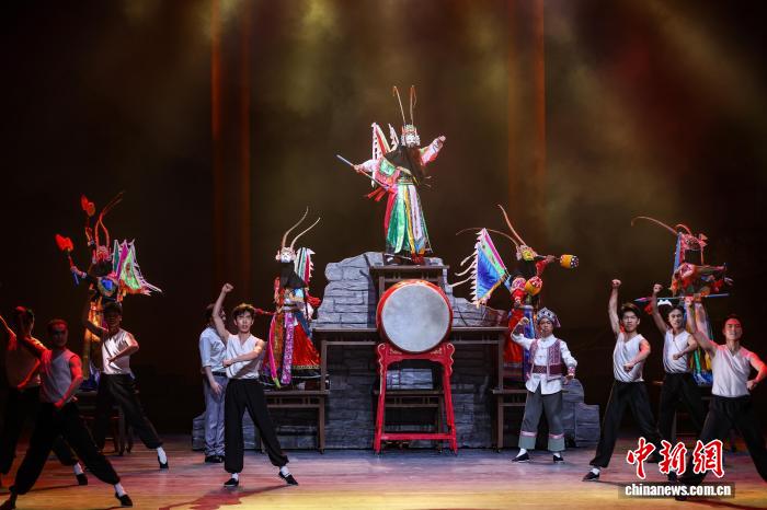 由貴州省民族歌舞團(tuán)演出的民族歌舞劇《山河同心》作為開幕式劇目首演。劇目以第一批國家級(jí)非物質(zhì)文化遺產(chǎn)名錄項(xiàng)目“安順地戲”為重要情感紐帶和文化符號(hào),共分為《上梁》《拜月》《敬茶》《出征》四場(chǎng)。