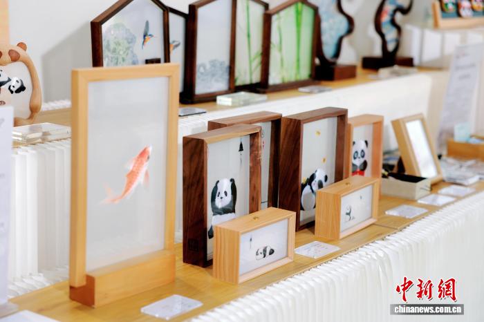 2025年8月,成都市郫都區(qū)安靖街道蜀繡創(chuàng)意中心,展示的蜀繡創(chuàng)意產(chǎn)品。郭芯屹 攝