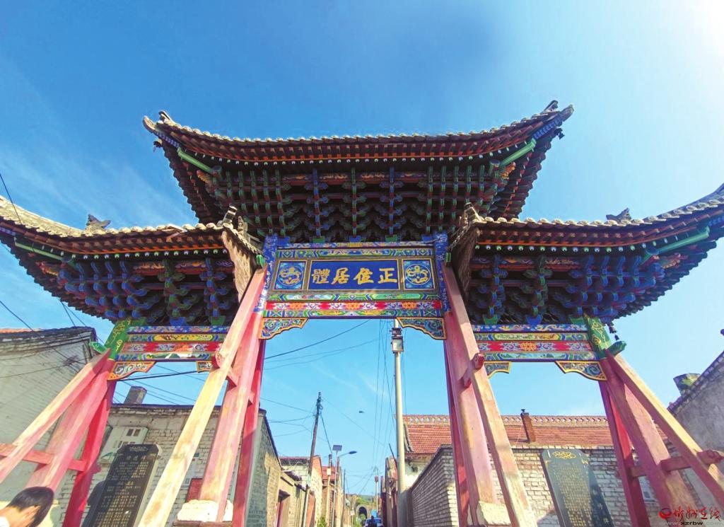 五寨縣三岔木牌坊坐落于三岔堡十字大街的北口,始建于明萬歷九年(1581年)。木牌坊坐北朝南,座基為60厘米高的石砌臺基。牌坊呈三項(xiàng)疊襯“品”字形制,四楹三門,坊高7.25米,通寬11.2米,其中門高3米,寬3.15米,車馬通行;兩邊門略低,高2.65米,寬2米,只呈門樣,不作通行。四楹都用雙木斜卡,并抱有雕獅的石鼓,以鐵條箍制,既固根基,又顯威嚴(yán)。欄坊下裝有木刻匾額,正面題“正位居體”,背面題“大觀在上”。頂端起脊彩飛,雙層檐頭,青瓦蓋頂;下檐五步彩飛檐頭拱,結(jié)構(gòu)奇巧,造型美觀,檐頭四角掛有風(fēng)鈴,微風(fēng)輕拂,鈴聲悠揚(yáng),蔚為壯觀。三岔木牌坊是五寨縣境內(nèi)僅存的一座木結(jié)構(gòu)明代古建筑,具有較高的建筑文化水平和藝術(shù)鑒賞價(jià)值。2007年6月6日,忻州市人民政府公布其為市級文物保護(hù)單位。